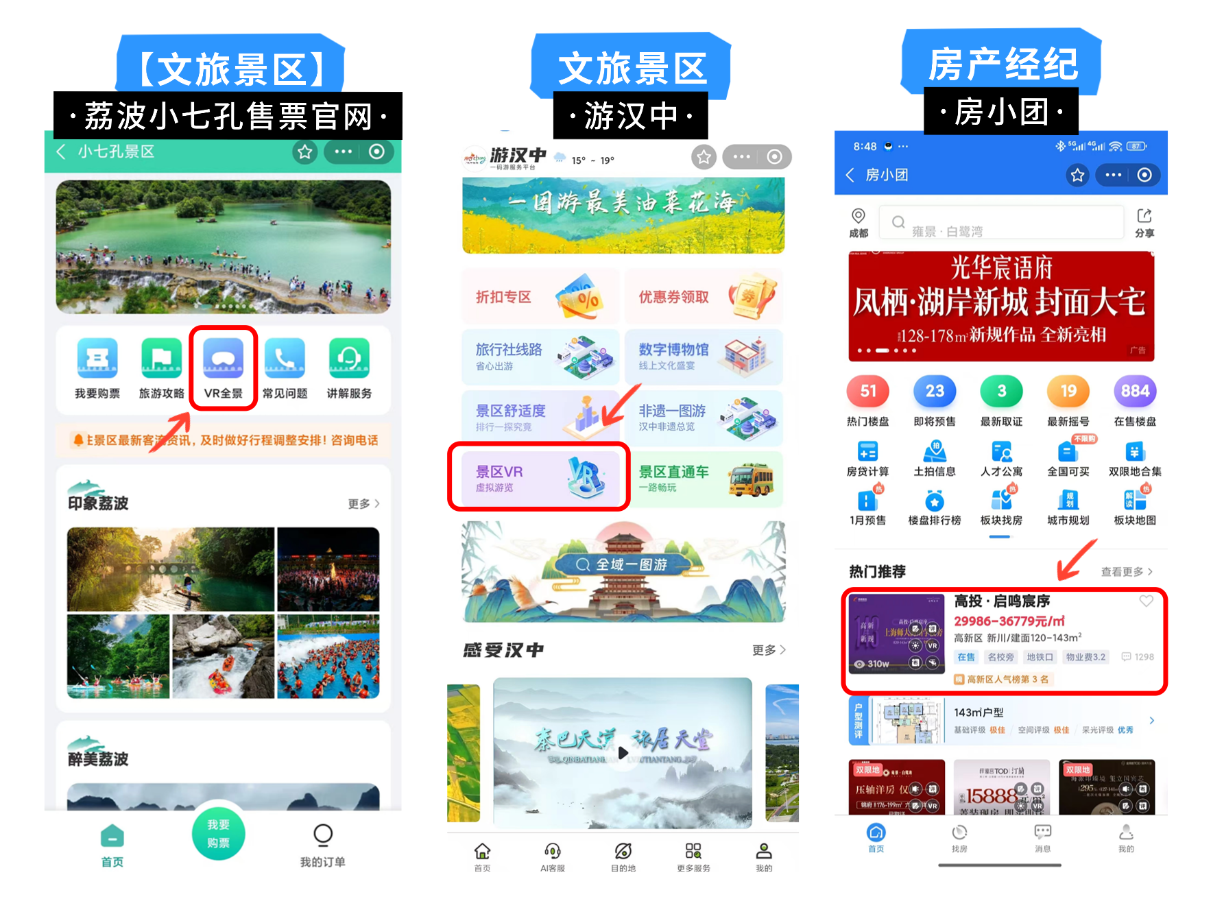 抖音搜索:“荔波小七孔售票官網(wǎng)”、“游漢中”、“房小團(tuán)”,進(jìn)入小程序即可查看VR全景。