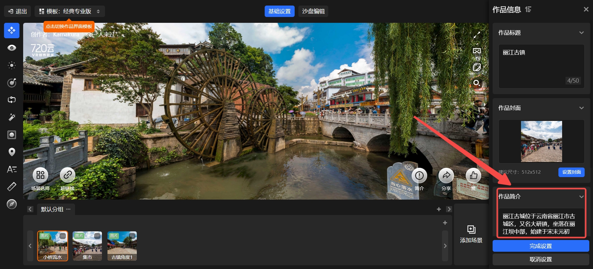 進入管理后臺,作品管理-選擇編輯作品,進入編輯界面后點擊-作品信息即可添加作品簡介。