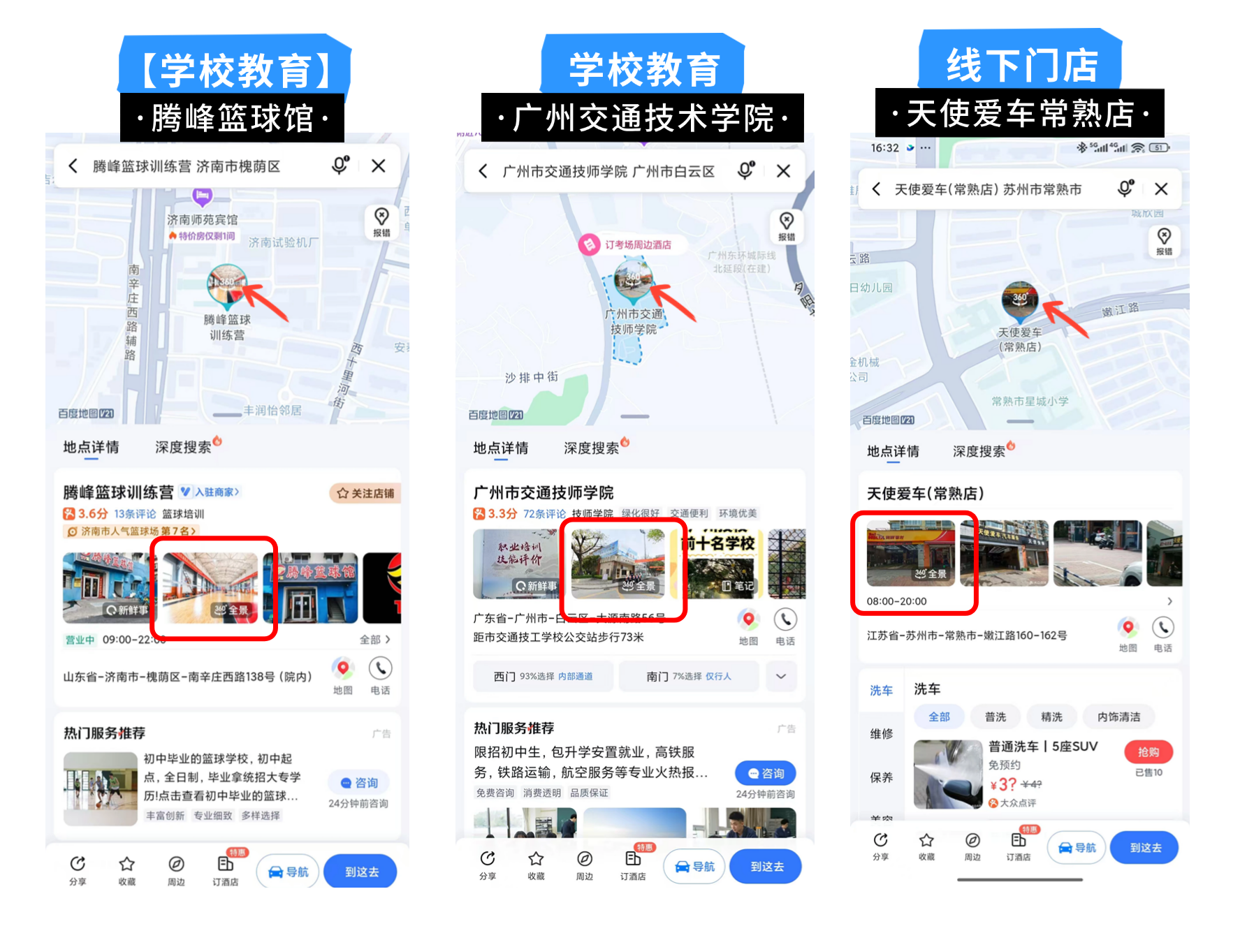 查看已上傳的案例請到百度地圖APP搜索:“山東省濟南市騰峰籃球館”、“廣州市交通技師學(xué)院”、“天使愛車汽車服務(wù)(常熟店)”。